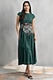 Green Double Georgette Applique Embroidered Midi Dress
