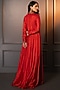 Featuring a red maxi dress in cotton silk base with hand embroidery. Accentuate it with statement earrings and heels for a festive occasion.