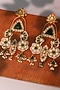 Featuring a pair of 22kt gold plated dangler earrings studded with green onyx, pearls and kundan polki, set in 92.5 sterling silver.