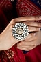 Featuring a 22kt two tone plated ring studded with white kundan polki, set in 92.5 sterling silver.