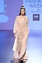 This set features a pink sleeveless long tunic in organza base appliqued with floral pattern self embroidery on the front. It comes along with pink oyster crochet full slevess long tunic with crochet borders. It comes along with oyster flared pants and bralet.