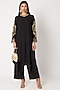 Featuring a black kurta in crepe base with golden threads embroidery and slits. It is paired with matching pants.