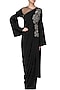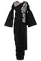 Featuring a black drape gown in picasso with silver floral embroidered panel and bell sleeves. It has a slit in front.