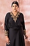 Featuring a black kaftan in satin base with bead work and a V-neckline. Accentuate it with statement jewellery, block heels and a clutch for a festive occasion or an evening soiree.