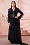 Featuring a black ruffled kurta in tulle base. It is paired with a bustier, sharara pants and a dupatta. Accentuate it with silver jewellery, embellished heels and a clutch for a festive occasion or a sangeet ceremony.