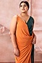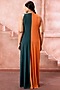 Burnt Orange & Teal Blue Satin Lycra Draped Gown