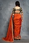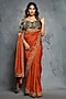Featuring a burnt orange saree in tussar silk base with zardosi, beads and sequins embroidery. It is paired with an embroidered blouse. Style it with wedges, gold jhumkas and a sleek bun for a chic ethnic look. Ideal for festive gatherings, family functions, or sangeet ceremonies.