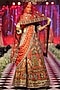 Featuring a coral red lehenga in silk base with stone, cutdana, zardosi, sequins and resham embroidery. It is paired with an embroidered blouse and two dupattas in net and georgette fabric. These opulent bridal lehengas with intricate embroidery and rich detailing are perfect for wedding ceremonies, styled with heritage jewellery and a regal veil for an unforgettable bridal statement.
