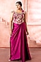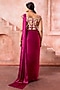 Deep Magenta Pink Satin Sequins Embroidered Draped Gown Saree