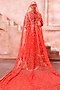 Deep Red Tulle Peal & Stone Embroidered Lehenga Set