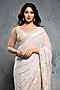 Featuring a dove grey saree in georgette base with sequins, beads and cutdana embellishment. It is paired with an embellished blouse. Style it with block heels, emerald earrings and a sleek bun, ideal for sangeet ceremonies or cocktail soirees.