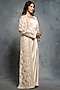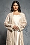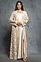 Featuring an ecru beige gown in satin base with a side slit. It is paired with an organza jacket having sequins, stone and cutdana embroidery. Style with diamond earrings and strappy heels for a sophisticated allure, perfect for receptions, gala evenings, and high-end cocktail parties.