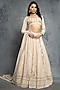 Ecru Beige Tulle Tropical Motif Embellished Lehenga Set