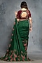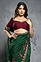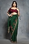 Featuring a forest green saree in tussar silk base with resham, pearls, beads and sequins embroidery. It is paired with a maroon pure silk embroidered blouse. Style it with wedges, gold jhumkas and a sleek bun for a chic ethnic look. Ideal for festive gatherings, family functions, or mehendi ceremonies.