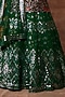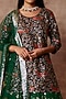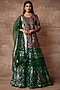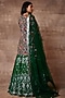 Featuring a green lehenga in organza base with metallic sequins work. It is paired with a contrasting kurta having floral kalamkari print and sequins embellishments, including a tulle dupatta having kalamkari print.