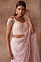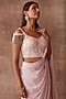 Featuring a lavender blush saree in organza base with sequins and cutdana embroidery. It is paired with a matching cold shoulder blouse having tassels and floral sequins embroidery.