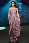 Featuring a mauve strapless gown in satin tissue organza base with sequins, beads, stones and pearl embellishment, including 3D wave-like texturing. Accentuate it with dangler earrings, block heels, a clutch and soft curls, ideal for cocktail soirees.