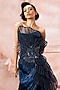 Featuring a midnight blue skirt in satin tissue organza base with floral motif hand embroidery. It is paired with a sculpted corset. Style this skirt set with zircon jewellery, high heels and an embellished clutch. Complete the look with soft glam makeup and a sleek hairdo for your reception, wedding or engagement ceremony.