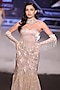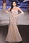 Featuring a pearl white gown in satin tissue organza and Lace base with a sculpted sweetheart neckline, sequins, cutdana and crystal stone embroidery. Styled with a dewy glow and sparkling jewels, this gown is made for unforgettable entrances at receptions and couture events.