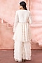 Featuring a pearl white ruffled kurta in tulle base. It is paired with sharara pants and a dupatta. Accentuate it with gold jewellery, embellished heels and a clutch for a festive occasion or a pre-wedding ceremony.