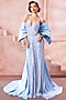 Featuring a powder blue corset gown in tulle base with a sweetheart neckline and sequins hand embroidery. It is paired with a off-shoulder full-length taffeta cape. Accentuate it with zircon jewellery, metallic heels and a clutch for evening events, cocktail nights, red carpet or a sophisticated gathering.