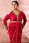 Rose Pink Satin Stone & Sequins Hand Embroidered Draped Gown