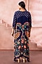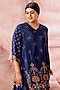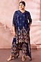 Featuring a royal blue kurta in satin base with floral and paisley motifs detail and a V-neckline. It is paired with pants. Accentuate it with gold jewellery, embellished heels and a clutch for a festive occasion or a pre-wedding ceremony.
