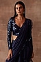 Featuring a royal blue pant saree in sequins and tulle base. It is paired with a matching organza ruffled drape having cutdana and beadwork, including a blouse.