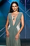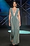 Featuring a sage green gown in stretched mesh base with a plunging neckline and gathered detail at the front. Shine like a star with soft waves, minimal diamonds, and a sleek clutch, ideal for receptions and evening galas.
