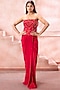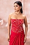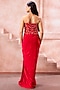 Scarlet Red Lycra Beads Embroidered Strapless Gown