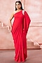 Featuring a scarlet red one-shoulder draped gown in lycra base with stone hand embellishments. Accentuate it with zircon earrings, metallic heels and a clutch for evening events, cocktail nights, red carpet or a sophisticated gathering.