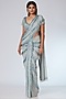 Silver-Grey Chiffon Pre-Stitched Embroidered Saree Set