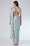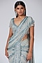 Featuring a silver-grey pre-stitched saree in chiffon base with tassels and sequins godet embroidery. It is paired with a matching blouse.