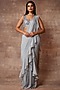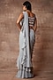 Featuring a silver-grey pre-stitched ruffled saree in chiffon base. It is paired with a matching blouse having sequins and beads work.