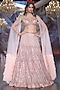 Featuring a vintage blush lehenga in tulle base with sequins, cutdana and stone embroidery. It is paired with a blouse. Style this lehenga set with zircon jewellery, high heels and an embellished clutch. Complete the look with soft glam makeup and a sleek hairdo for your reception, wedding or engagement ceremony.