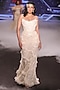 Featuring a white corset in chantilly lace and tulle base with scalloped layer detail, sequins and pearl embroidery. It is paired with a skirt. Style with emerald jewels, sleek heels, and curls for a striking finish.