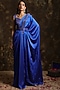 Featuring a royal blue draped saree in satin silk base. It is paired with a blouse having bead embroidery and a belt. Accentuate it with statement jewellery and heels for weddings or sangeet ceremonies.