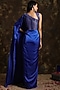 Royal Blue Satin Silk Draped Saree Set