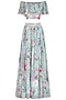 Blue Printed Crop Top With Embroidered Skirt