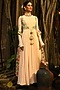 Featuring a cream-yellow anarkali in crepe base with churidar sleeves. It is paired with matching lycra stretch net churidar pants, a hand-embroidered cropped jacket, and an organza dupatta having floral print.