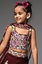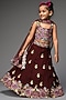 Featuring a deep wine lehenga in organza base with mirror and thread embroidery. It is paired with a matching blouse and a net dupatta.