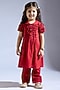 Featuring a red top for girls in spun silk base with cuff detail. It is paired with pants. Accessorise it with matching hair accessories and sandals for a stylish ensemble, ideal for a festive occasion.