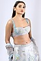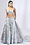 Featuring a steel grey lehenga in tulle base with thread and 3D embroidery. It is paired with a matching bralette and a dupatta.
