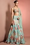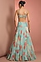 Blue Viscose Organza Printed & Embroidered Lehenga Set