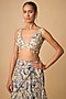 Featuring a blue pre-draped saree in viscose organza base with print. It is paired with an embroidered blouse. Pair with statement gold jewelry and heels for weddings, festive events, evening parties, or receptions.