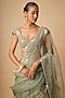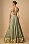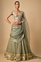 Featuring a green lehenga in chanderi base with hand embroidery. It is paired with a blouse and an organza dupatta. Accentuate it with emerald jewellery, embellished heels and a clutch for a bridal look.