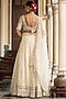 Featuring an ivory lehenga in silk and banarasi organza base. It is paired with a hand embroidered blouse and a silk organza dupatta. Accentuate it with statement earrings and heels for weddings or engagement ceremonies.