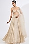 Featuring an ivory lehenga in chinon chiffon base with mosaic print and hand embroidery. It is paired with an embroidered blouse and a pure organza dupatta. Accentuate with statement jewellery and heels for a wedding or sangeet ceremony ceremony.