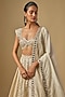 Featuring an ivory lehenga in silk banarasi chanderi base with mirror hand embroidery. It is paired with a blouse and a dupatta. Accentuate it with statement jewellery and heels for a wedding, sangeet or engagement ceremony.