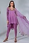 Featuring a lilac short anarkali in georgette base with applique, sequin, thread and mirror embroidery. It is paired with pants and an organza dupatta. Perfect for festive occasions.